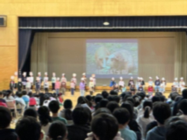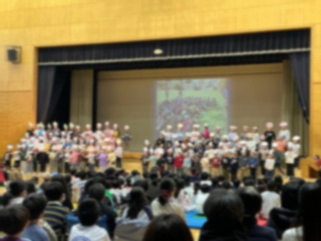 2年生の後に1年生が体育館で発表をしました。1年生も自分たちが調べた生き物について、堂々と発表しました。位置の入れ替えも上手にできました。明日の保護者鑑賞日でも素敵な発表を見せてくれると思います。