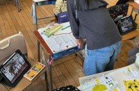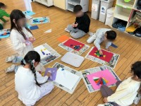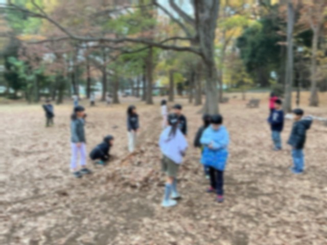図工では、芦花恒春園で落ち葉や枝を集めたり並べたりして活動しました。