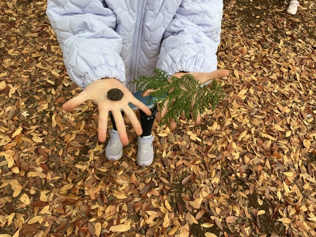 たくさんの落ち葉があり、友達と協力しながら楽しんで活動することができました。