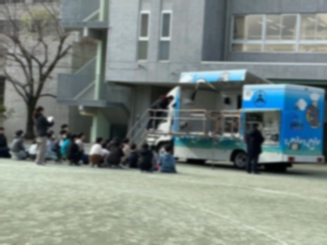 6年生は、避難訓練・防災教育の一環として、地震を体験できる車、世田谷区の「なまず号」で、「揺れを感じたら、机などの下に潜り、低い姿勢で身を守る」という体験をしました。大きな地震が起こったときの疑似体験をし、自分の身は自分で守るという意識を再確認することができました。