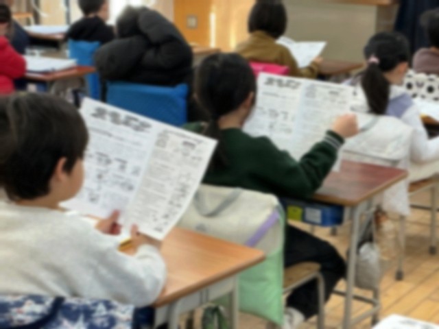 1年生の教室を覗くと、先生と一緒に給食便りを読んでいました。1月の給食便りには、学校給食の歴史や特色ある献立の説明が掲載されていました。「昔の給食はこんなのだったんだ」「昭和の給食を食べてみたいな」「昨日、七草粥を食べたよ」など話題が広がっていきました。3学期の給食は明日から始まります。みんな楽しみにしています。
