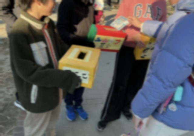 代表委員会の児童がユニセフ募金の呼びかけをしました。募金協力の呼びかけにあたっては、事前に、代表委員会の児童が募金の意味や内容、使われ方などについて作成した動画を全校児童が視聴しました。ご協力ありがとうございました。
