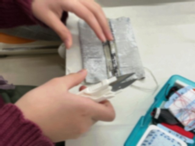 家庭科の時間には、ミシンのセットアップができるようになり、空縫いでミシン縫いを試してきた5年生。今日は練習布を用いて、ティシュカバーをつくりました。基本縫いを習得すると同時に、ティシュカバーが出来上がるという喜びも味わいました。