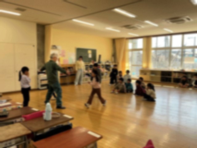 1年生は3回に渡って世田谷パブリックシアターの方と演劇ワークショップを行いました。教科日本語の学習と関連付けて、いろいろなものになりきって演じてきました。最後となる今日は、「ももたろう」のお話をグループで分担してお話を繋いで演じました。自分の表現から友達と相談しながらつくっていく表現を楽しむことができました。