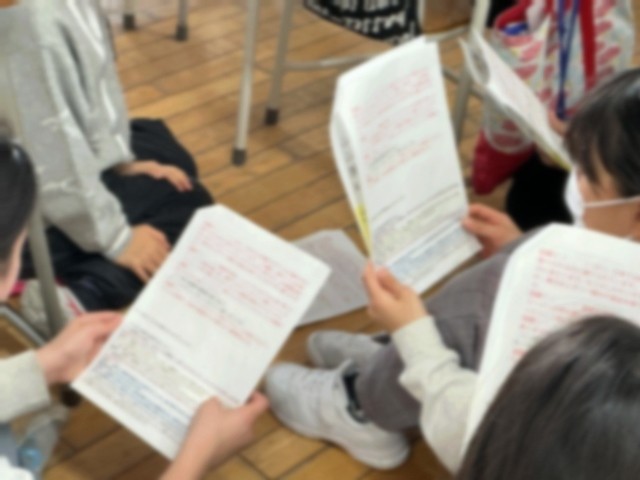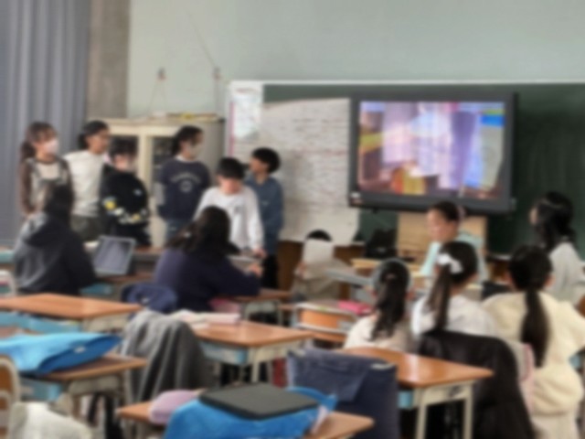 秋に行われた学習発表会では、5年生は学級閉鎖などの関係で発表をすることができませんでした。来週9日の2、3時間目に発表の機会を設定しました。5年生フロアで行いますが、自分のクラスの教室ではなく、発表の形式によって教室が異なります。最後の確認で友達同士で助言し合い、よりよい発表をめざしています。