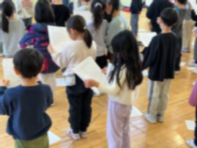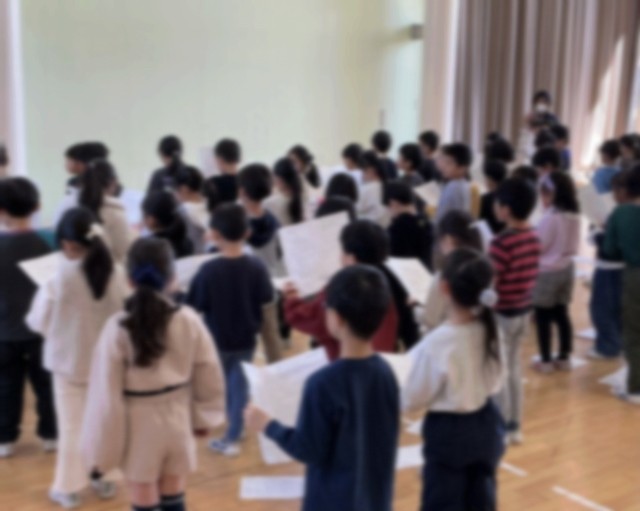 1年生は、学校の代表として、入学式前の時間に新1年生に向けて「出し物」をします。自分たちが入学したときに2年生が呼びかけや歌を歌ってくれたことを思い出した1年生。今度は自分たちの番です。学年での練習が始まりました。新1年生が喜んでくれることでしょう。1年生にとって、憧れの2年生になれそうです。