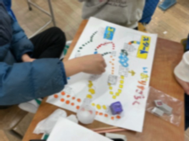 2年生の生活科と図工では、自分の成長についてすごろくの形にまとめ、作ったすごろくをグループで楽しみました。同時に、成長を支えてくれた人々について改めて気付き感謝の気持ちをもちました。