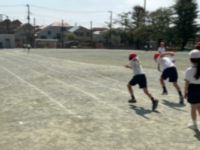 この時期、各学年外での体育では様々な走る運動に取り組んでいます。