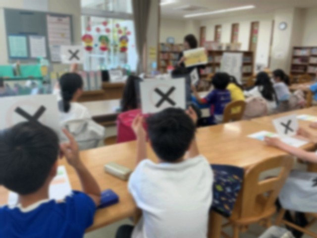 各学級の図書の時間には、図書館司書の方に図書のオリエンテーションをしていただいています。図書室を有効活用するきっかけになっています。
