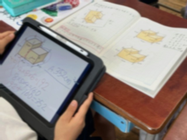 5年生の算数です。体積の意味や体積を表す単位を学びました。そして、直方体や立方体、複合図形の体積の求め方をいろいろ考えて発表し合いました。