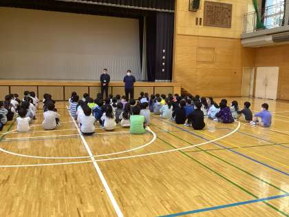 各クラスの担任を紹介や、4年生としての心構えなどの話を聞きました。