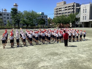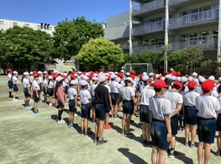 整列や回れ右など、基本的な集団行動を学年全員で揃えることの難しさを実感した子どもたちです。