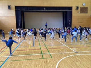 その後、ダンス「エイサー」について紹介を聞き、「動く・止まる」の基本動作などにも取り組みました。