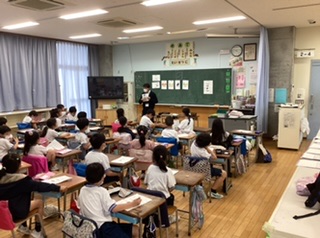 第1回目は新しいALTの先生の自己紹介を聞いたり、好きな物を紹介しあったりしました。