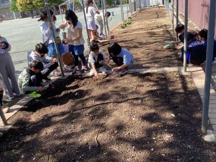 「季節と生き物の様子」でヘチマの種を植えました。