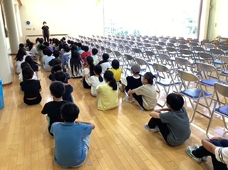 机を端に寄せ、椅子を並べる作業を2クラスで力を合わせ、たったの5分で終えました。
