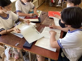 今日は、班の友達と話し合い、共に考えながらそれぞれの段落の要旨を捉えました。