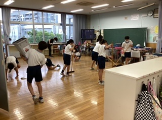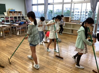 5年生から外国語ルームや図工室、靴箱など、出張掃除も始まり、それぞれの場所で活躍しています。