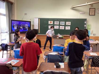 楽しいゲームを通して発音ややり取りの練習をしています。