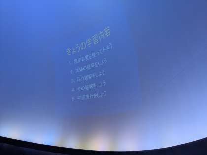 星や月の動き方の学習や、船橋小学校から見える星座の学習などをしました。知っている場所から見える星座や月の動きだったため、関心をもって説明を聞くことができました。星や月の学習はもう少し先になりますが、実際の学習の際にいかしてほしいと思います。