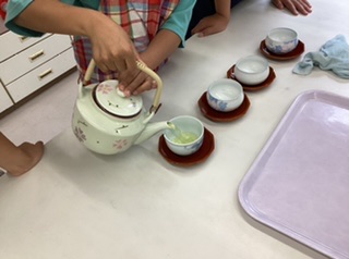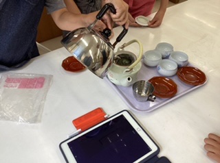 ガスコンロを使いお湯を沸かしたりお茶を淹れたり、友達と協力して美味しくお茶をいただきました。