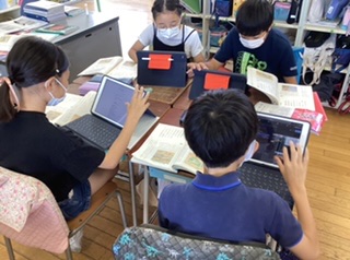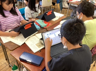 知らない言葉をタブレットで調べたり、教科書のQRコードから音声を聞いたり、自ら学びを深めようと取り組んでいます。