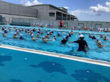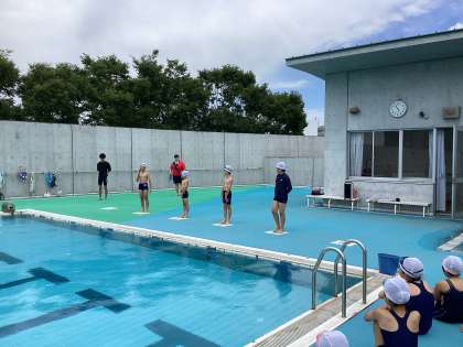 天候にも恵まれ、4年生1回目の水泳を行いました。プール開きでは、各クラスの代表が立派に目標を発表しました。4クラスで入るのは初めての経験でしたが、しっかりと話を聞き、無事に入ることができました。