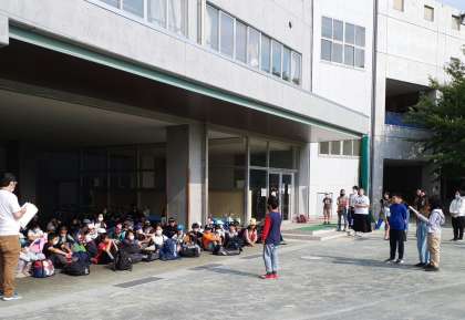6月19日、穏やかに晴れた朝、5年1組3組の川場移動教室が始まりました。元気に「いってきます!」をして、出発しました。