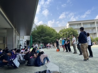 今日は、2クラス合同で出発式や開室式などの確認とリハーサルを行いました。