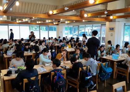 開室式に続いて、食堂でお弁当をいただきました。食堂でワイワイ楽しく、美味しくいただきました。