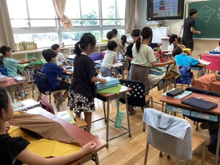 ほとんどの児童が、今回初めて触ったという風呂敷。