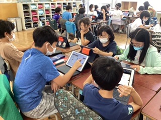 4組では、行動班ごとに学んだことについてパワーポイントでまとめています。