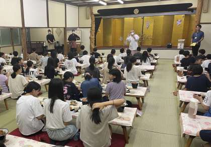ハイキングでの疲れを回復させようと、または、この後の肝試しに備えようと、美味しく夕食をいただきました。宿の皆さんのおかげで、しっかり食べて、楽しい食事のひと時を過ごしました。