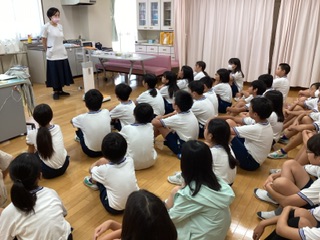 保健指導では、足の健康に関するお話を聞き、足の骨の数や働き、足のトラブルについて学びました。