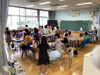 そして、友達と色水を交換しながらカップに色水を混ぜ合わせ、自分だけのオリジナル色水を作りました。