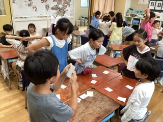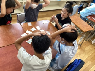 俳句のように「五・七・五」で、言葉を考え、それに合った絵を描き用意をしました。
