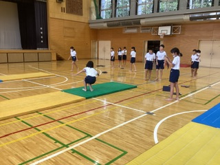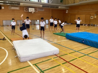 倒立前転や倒立ブリッジ、側方倒立回転など、自分に合った技にチャレンジしました。