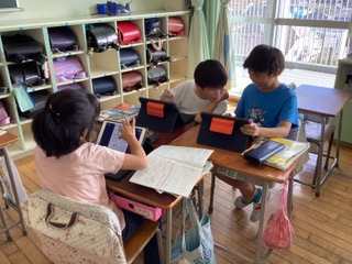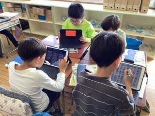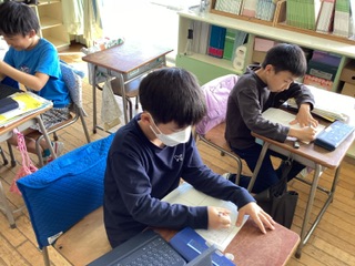 個人、グループ、手書き、ロイロなど、自分で選んで取り組んでいます。
