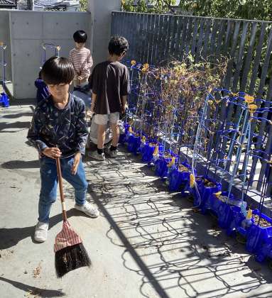 生活科の学習でアサガオのツルを使ってリース作りをしました。