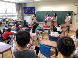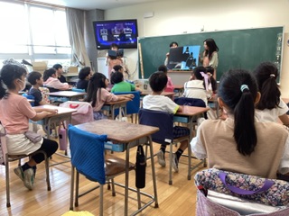 しぃんとした教室の雰囲気、真剣な表情で聞き入る子どもたち。