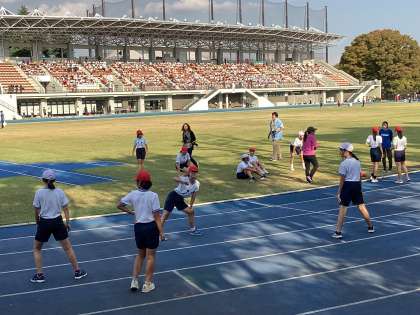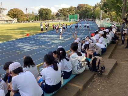 学校対抗の400メートルリレーでは、4名が代表として出場しました。
