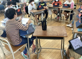 一人一人の経験や学びを基に話し合ったり、調べ学習をしてさらに深めたりしながら台本作りに取り組んでいます。