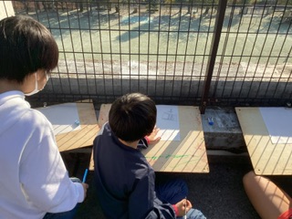 今回の題材のめあては、「自分たちの街に思いを馳せながらかこう」です。