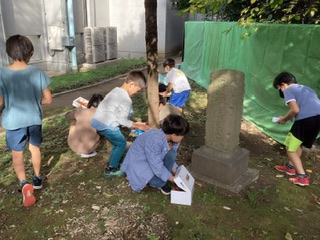「集めて、ならべてマイコレクション」では、秋の木の実や色づいた葉などを見つけてきて、箱の中に並べました。