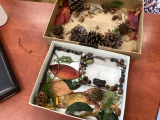 箱の中に小さな森や秋の宝石箱ができ、子どもたちの想像力あふれる作品に見惚れてしまいました。