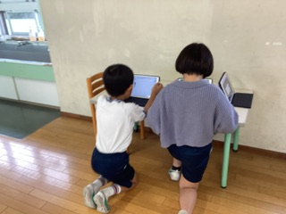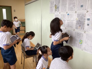 今日は、完成した新聞をみんなで見合い、感想を伝え合いました。
