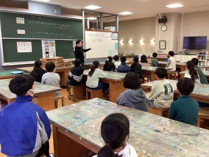 そんな図工室では、『線のカタチ』という彫刻刀を使った作品を作りました。