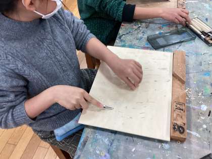 安全な使い方をしっかりと聞き、自分の思う形を彫りました。