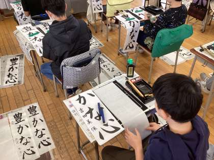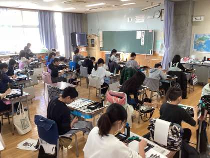 これまでの練習で見付けた自分の課題からそれぞれが気を付けることを考え、一画ずつ思いを込めて丁寧に取り組みました。
