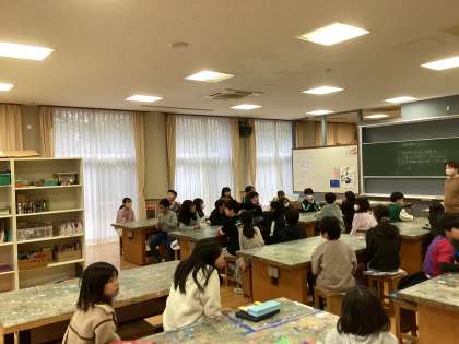清水先生から新しい図工室の紹介や使い方について説明していただきました。